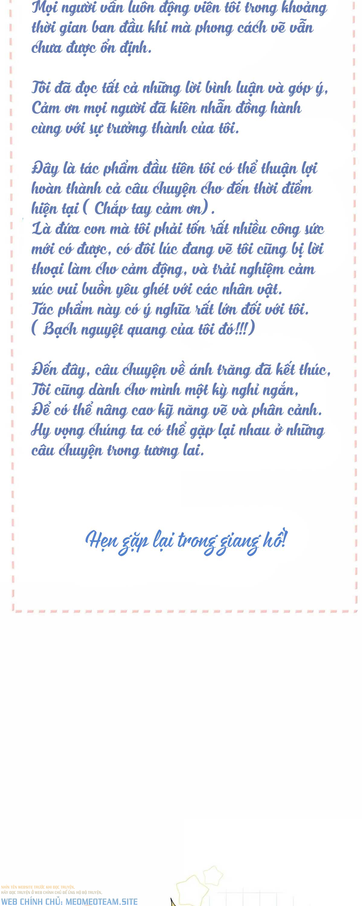 Huhu TAT v là bộ tr mà mình thích end r nó bồi hồi mà hụt hẫng quá đi à TAT Cảm ơn nhà dịch rất nhiều ạ