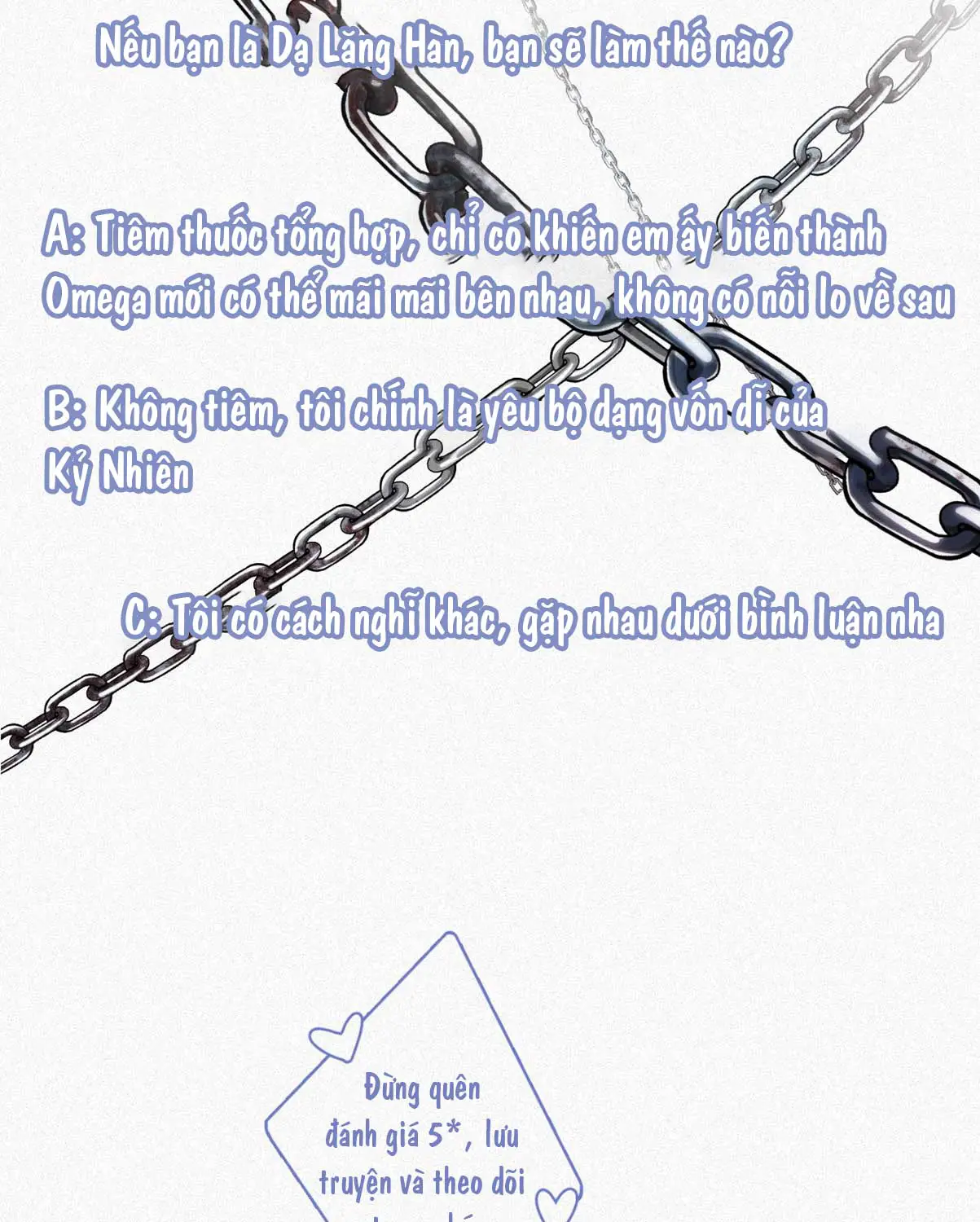 Tàn nhẫn thật, mở miệng ra là lời yêu lời thương, nhưng hành động thì trái ngược, yêu chính là yêu, con phân biệt giữa Alpha và Omega, mạo hiểm vì anh, chờ mất mới biết tìm hay gì