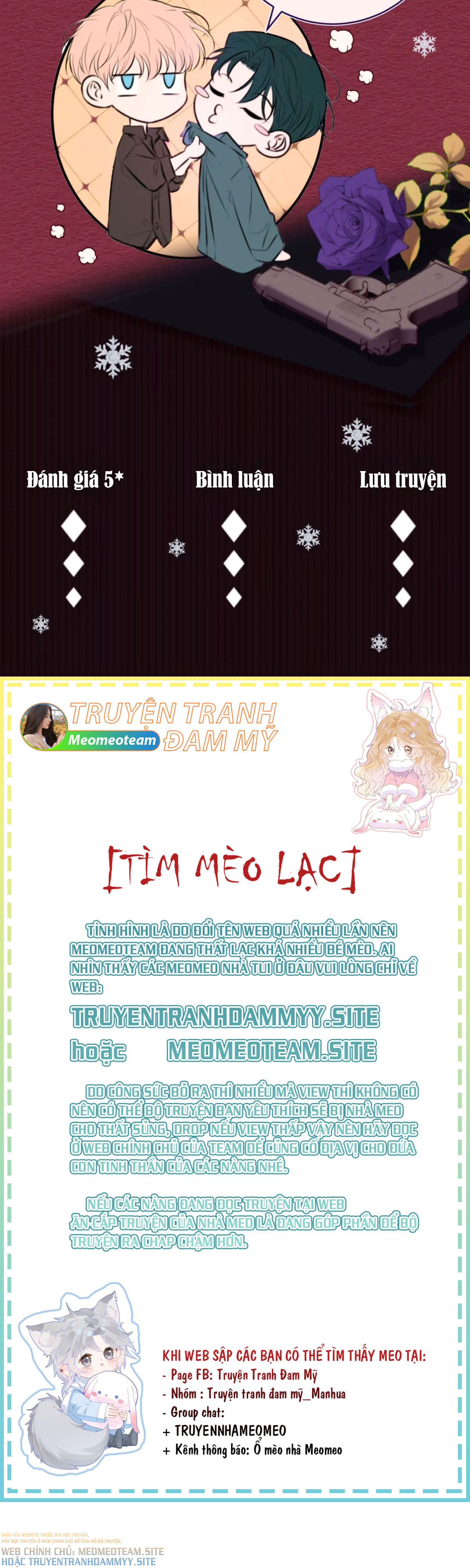 Đừng dừng lại cứ thiếp tục cái bộ này đi nếu không có ý tưởng thì có thể kết bạn tiktok với mình để có làm thêm nhiều bộ truyện Bl nữa nhé được ko mình mong meomeoteam sẽ không đừng bộ này Lại làm đến chap 1000 luôn đi