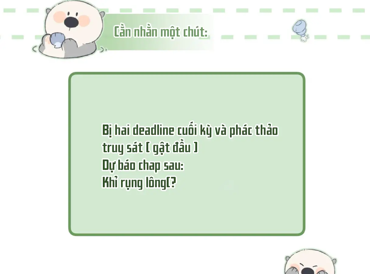 Quá trờ quá đấc 🙂 kiếp nạn thứ 81 của dịt bông, cơ mà chap sau “khỉ rụng lông” là ý gì? 🤣 ông nhỏ cắt tóc hả? hay là vì mục đích hoàn thiện hình ảnh trên sân khấu nên cbị bị Duệ với 2 đứa ae tốt kia xách đi wax lông chân?