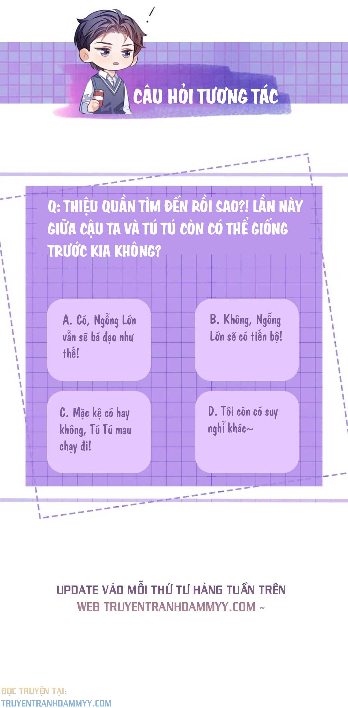 Ầy cx muốn ngược chua top lắm . Nhưng nhìn Tú Tú khổ sở vì vương vấn như v cx có chút ko nỡ. Thôi về vs nhau ik 2 bé.