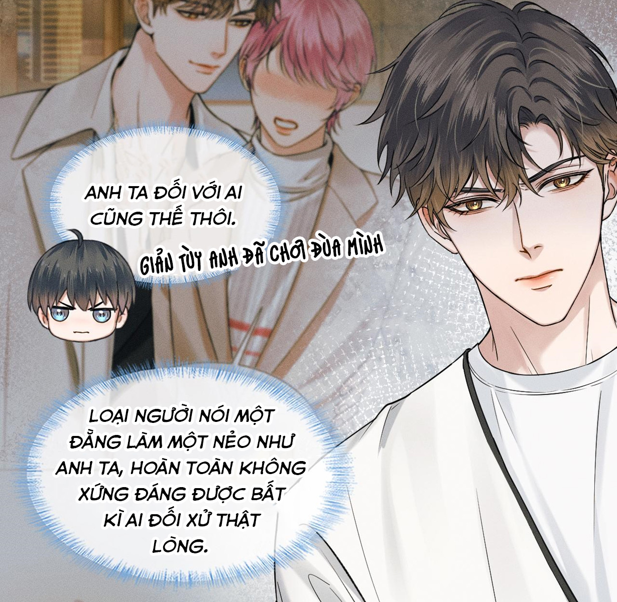 Đọc bl thấy mn hơi tiêu cực rồi hay do mình vô tư nhỉ. Từ chap 48 tới giờ mình chỉ buồn cười hai người này, hài ghê như cặp vợ chồng giận dỗi cãi nhau ý. Buồn cười thật sự. Ai nói mình kì lạ thì cũng chịu thôi, chứ buồn cười thật haha